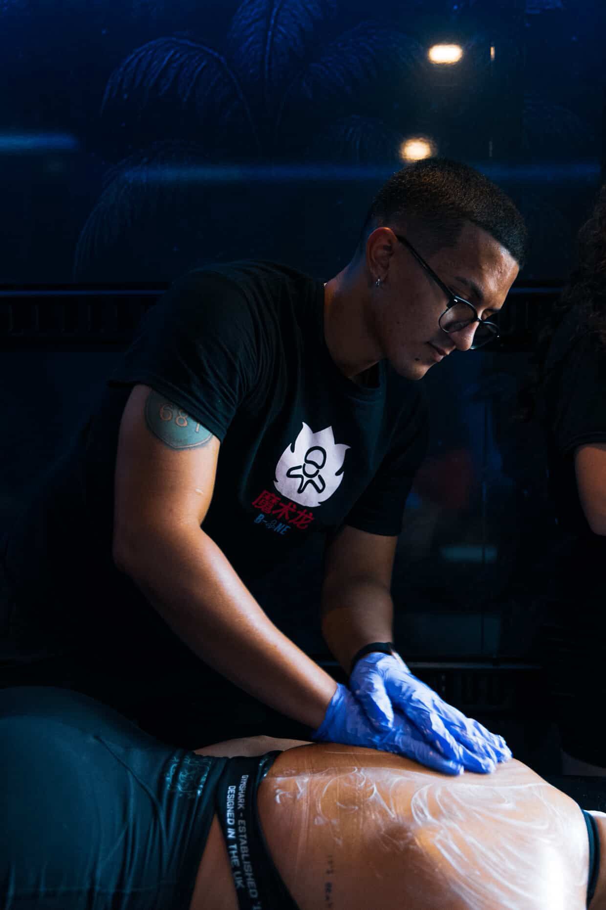 Use of manual massages combined with suction cups (cupping) to relieve muscle tension, improve circulation and reduce chronic pain.